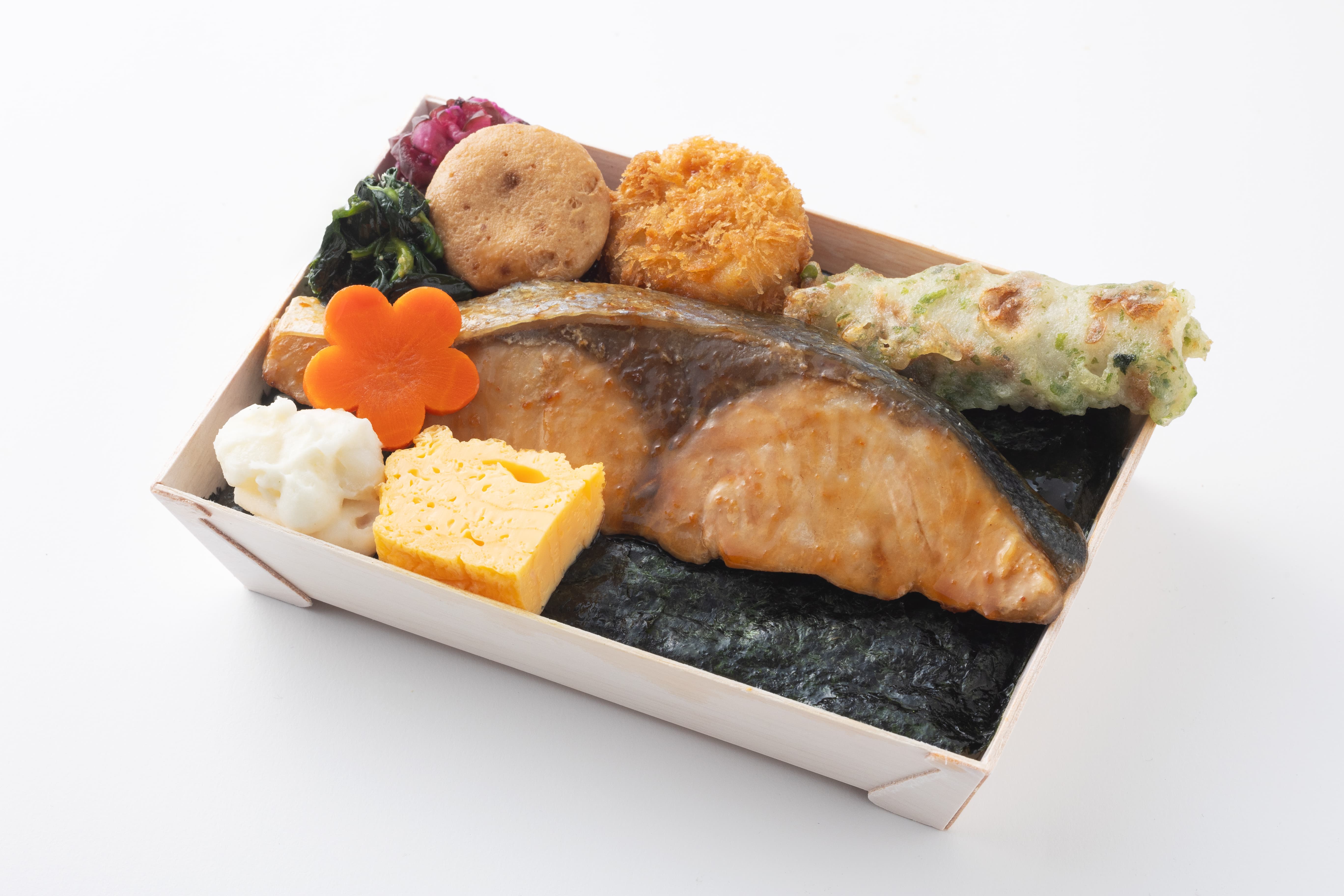 あえて定番の塩焼きではなく西京味噌にじっくり漬け込んだ職人こだわりの西京焼きをご用意しました。老舗和食店ならではのこだわりの味を是非ご賞味下さい。