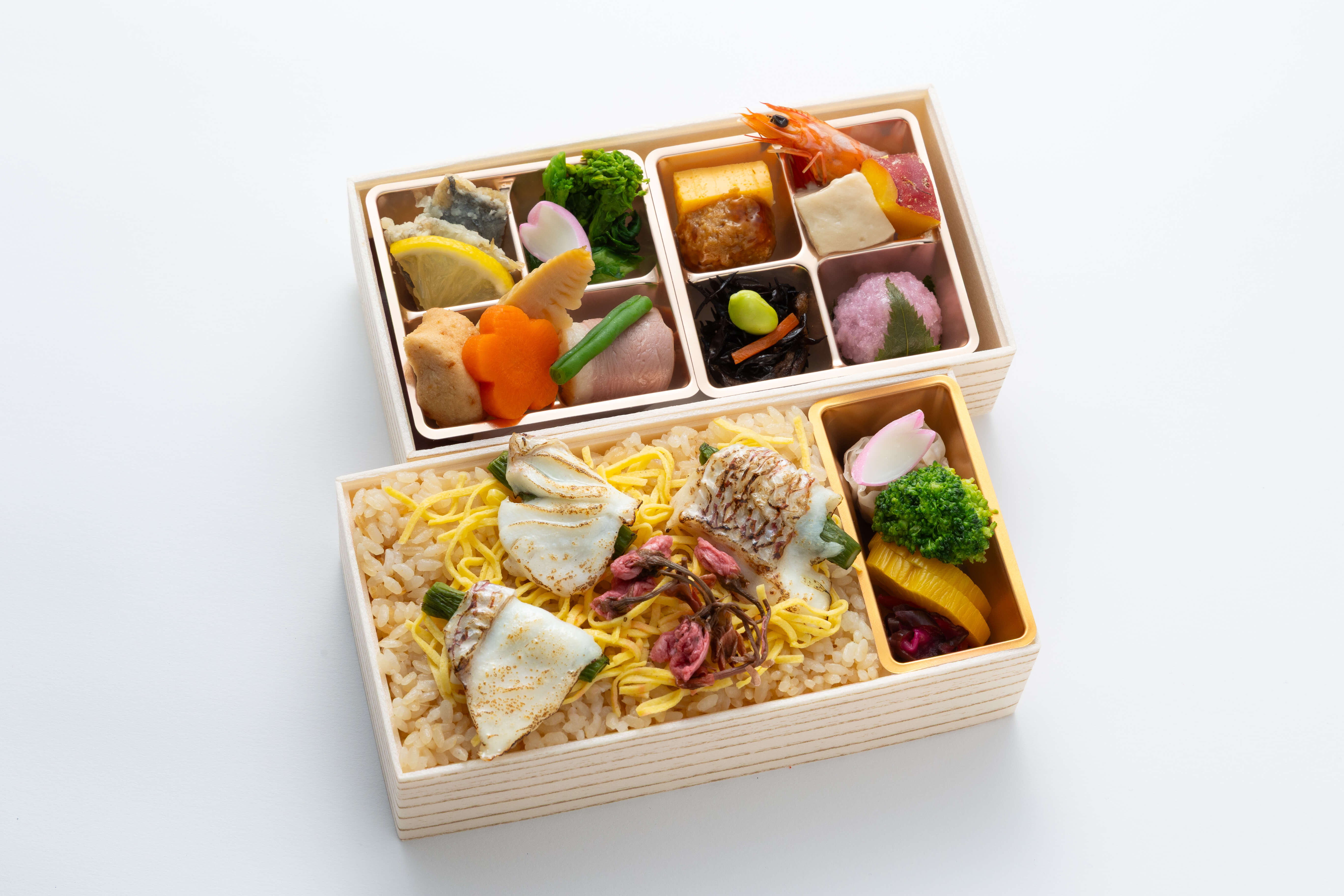 桜の塩漬けをあしらった鯛めし、旬の食材を丁寧に重ねたおかずたち。 蓋を開けた瞬間から、特別な時間が始まります。